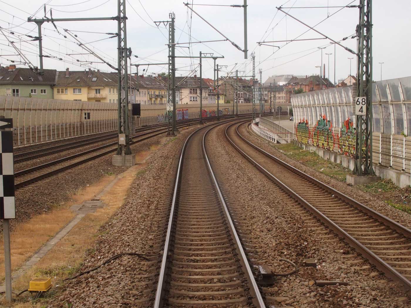 km 2,6 bei Mainz Römisches Theater (früher: Mainz Süd) - Blick Richtung Mannheim Hbf