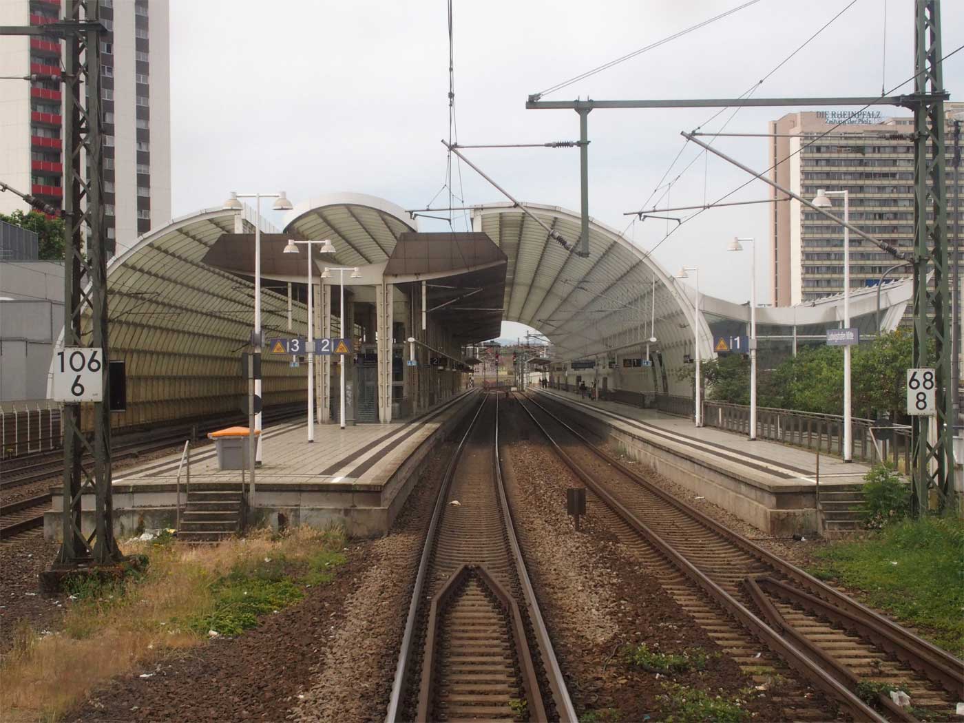 km 68,8 zwischen Ludwigshafen (Rhein) Hbf und Mannheim Hbf am Hp Ludwigshafen Mitte - Blick Richtung Mainz