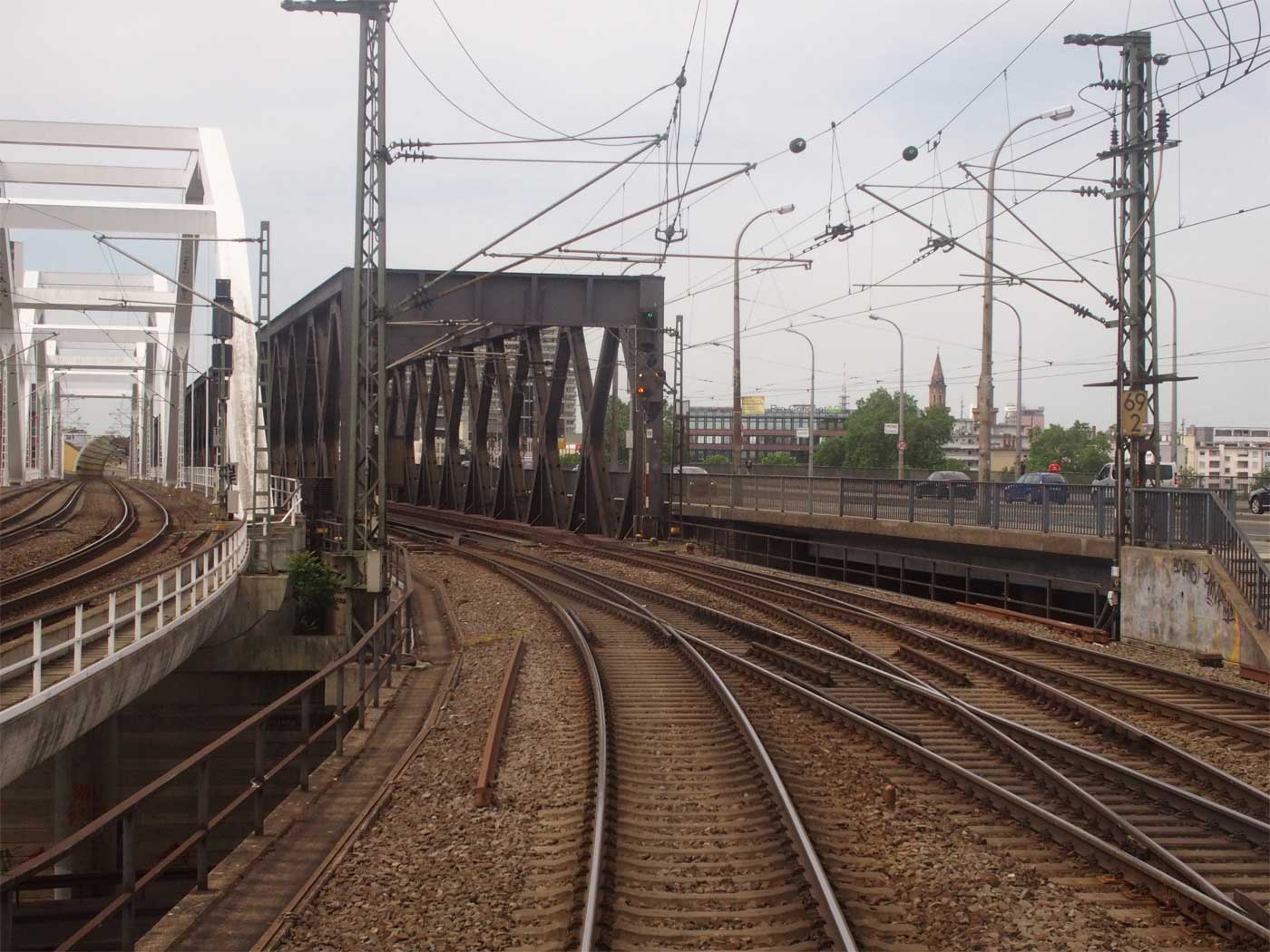 km 1,2 zwischen Mainz Hbf und Mainz Römisches Theater (früher: Mainz Süd) - Blick Richtung Mainz Hbf