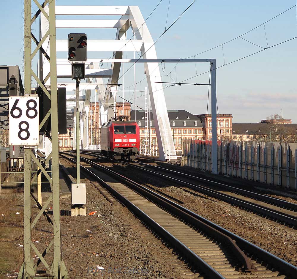 km 68,4 zwischen Ludwigshafen (Rhein) Hbf und Mannheim Hbf am Hp Ludwigshafen Mitte - Blick Richtung Mainz