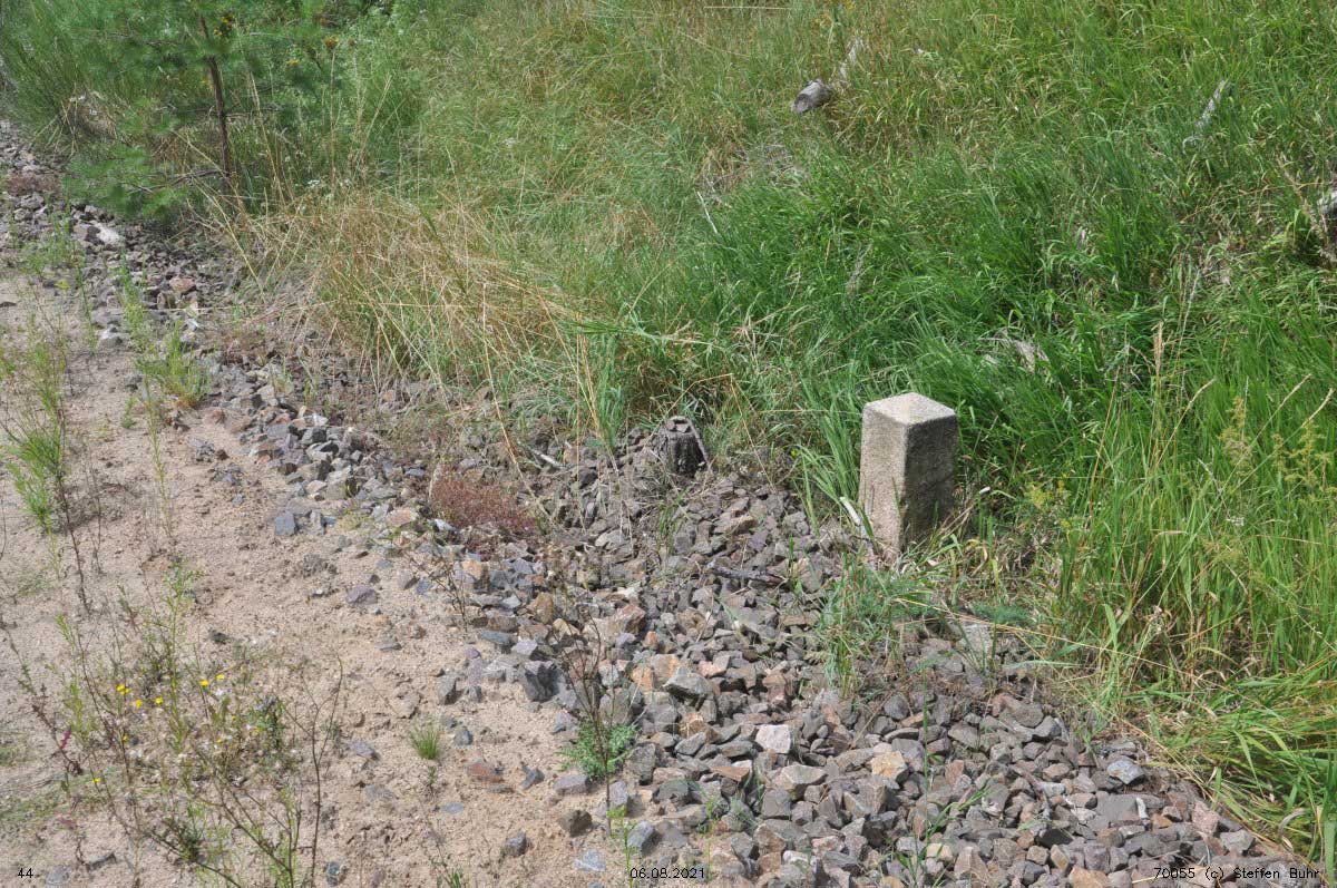 km 78,4 (Stein und Tafel) in Wiesenburg (Mark) - Blick Richtung Berlin