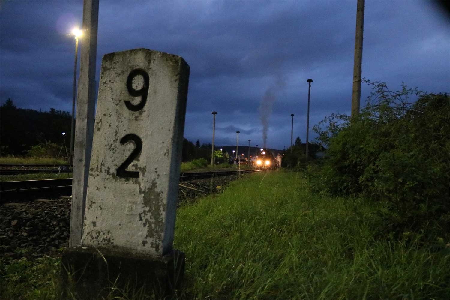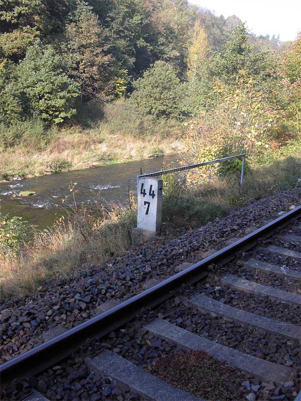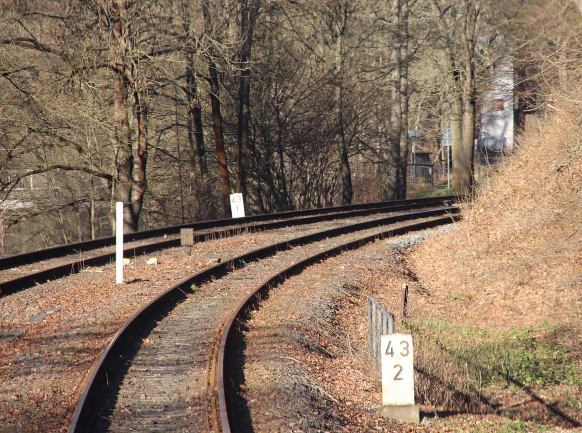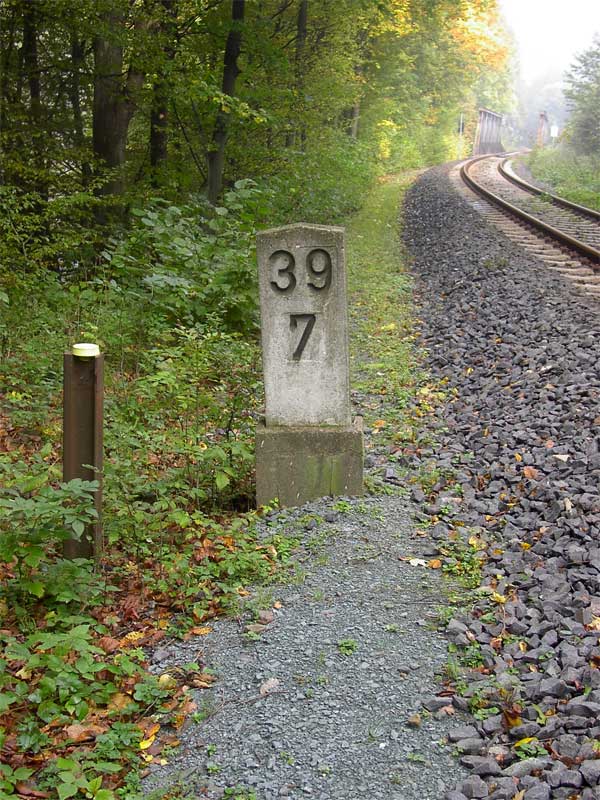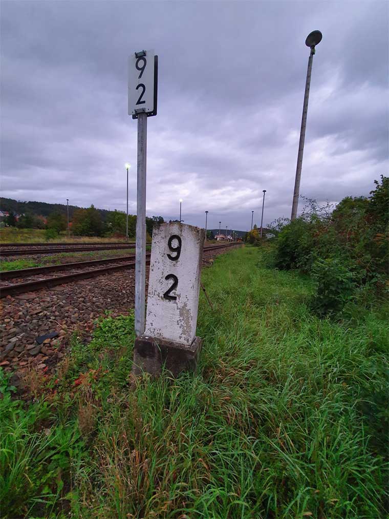 km 53,6 (Stein und Tafel) in Plauen (Vogtl) unt Bf - Blick Richtung Weischlitz