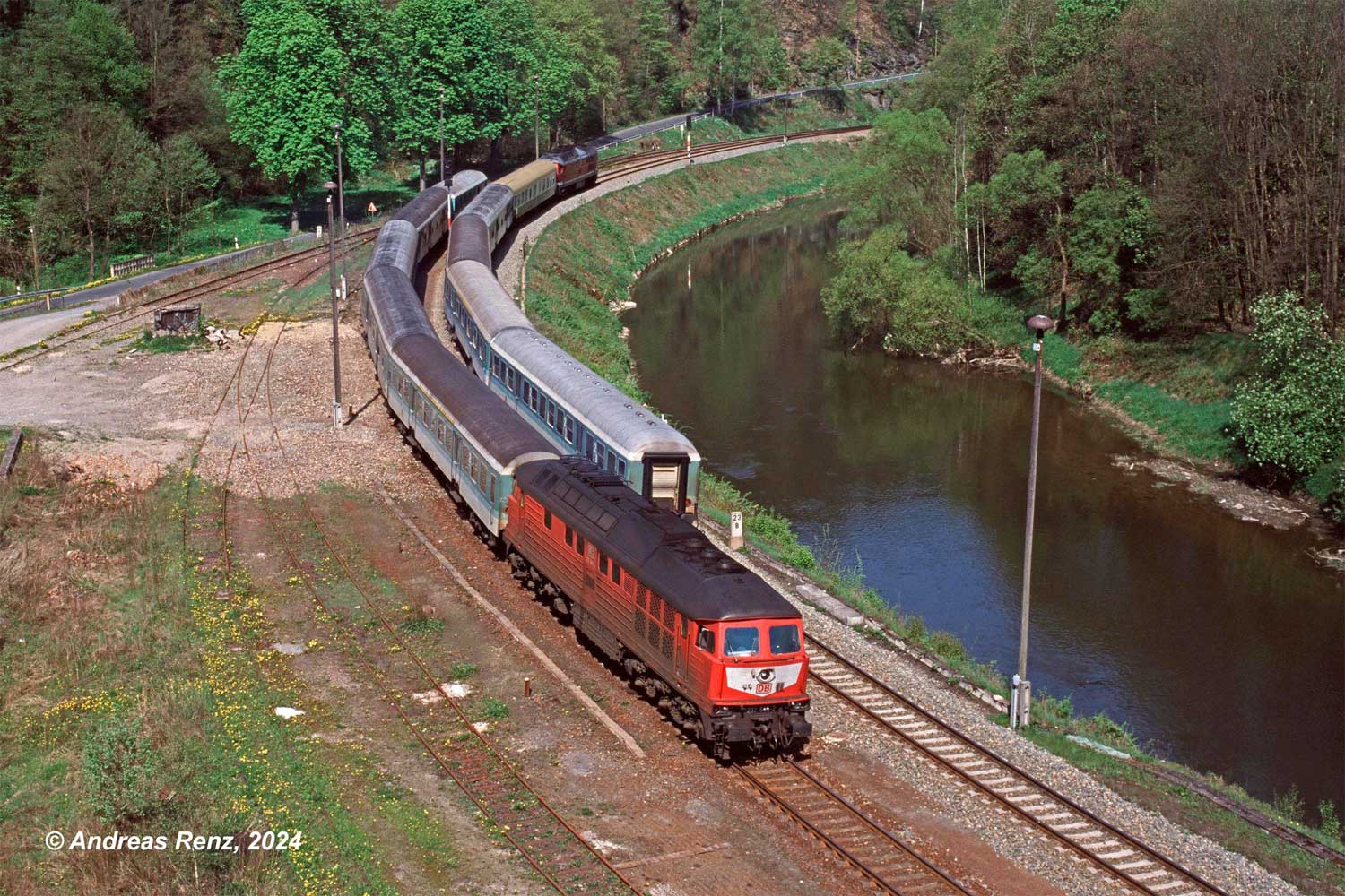 km 58,7 in Weischlitz - 232 673 und 232 347 kommen mit ihrem Zug aus Tschechien,