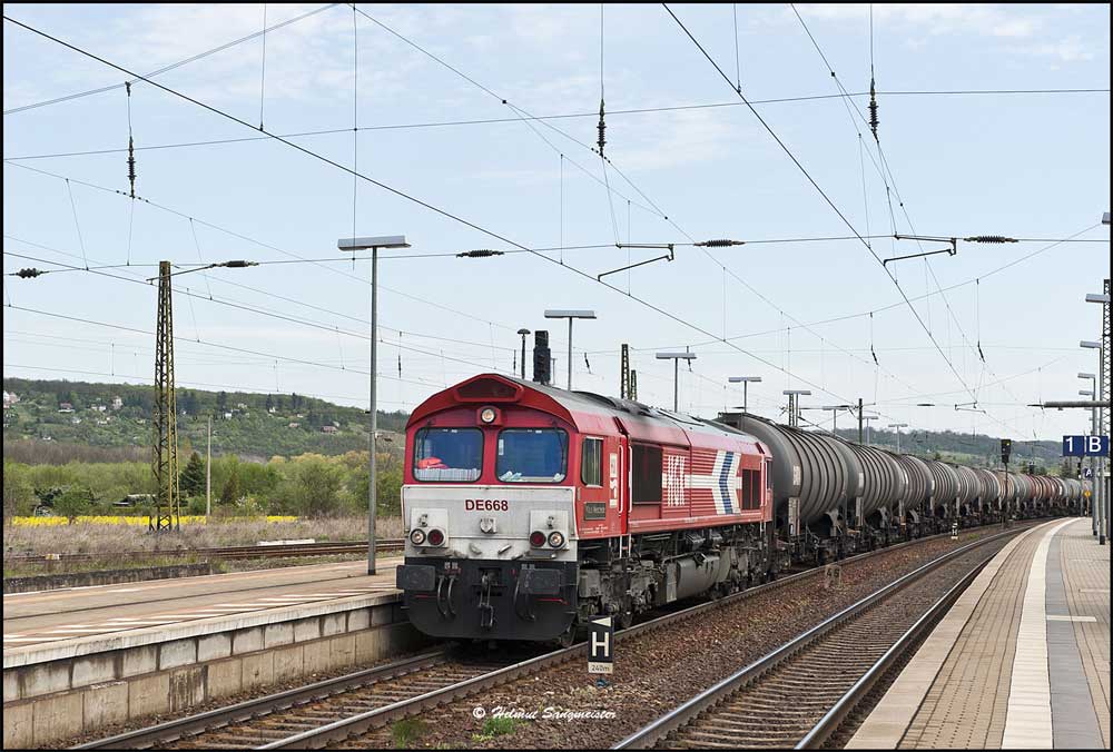 DE 668 mit Kesselwagenzug in Naumburg (Saale) Hbf am km 45,4 - Blick Richtung Halle (Saale)