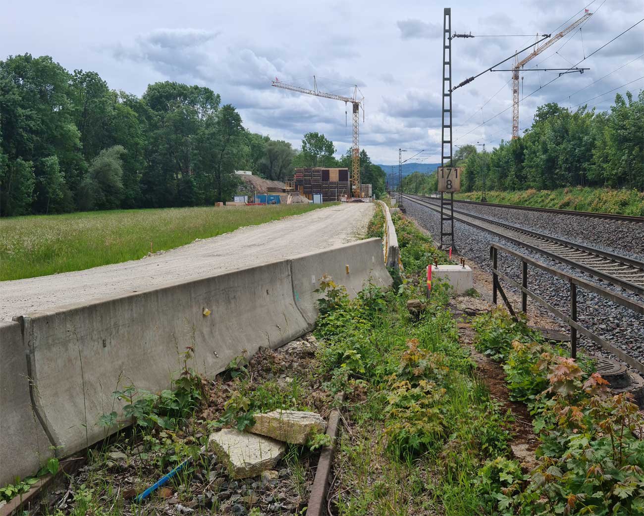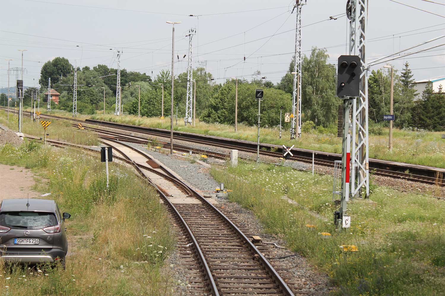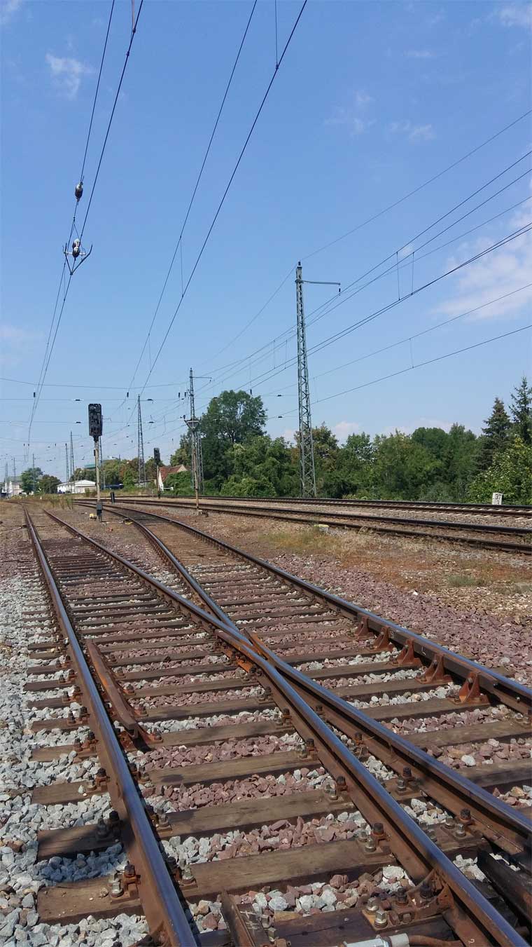 Im Hintergrund von rechts kommend das Richtungsgleis