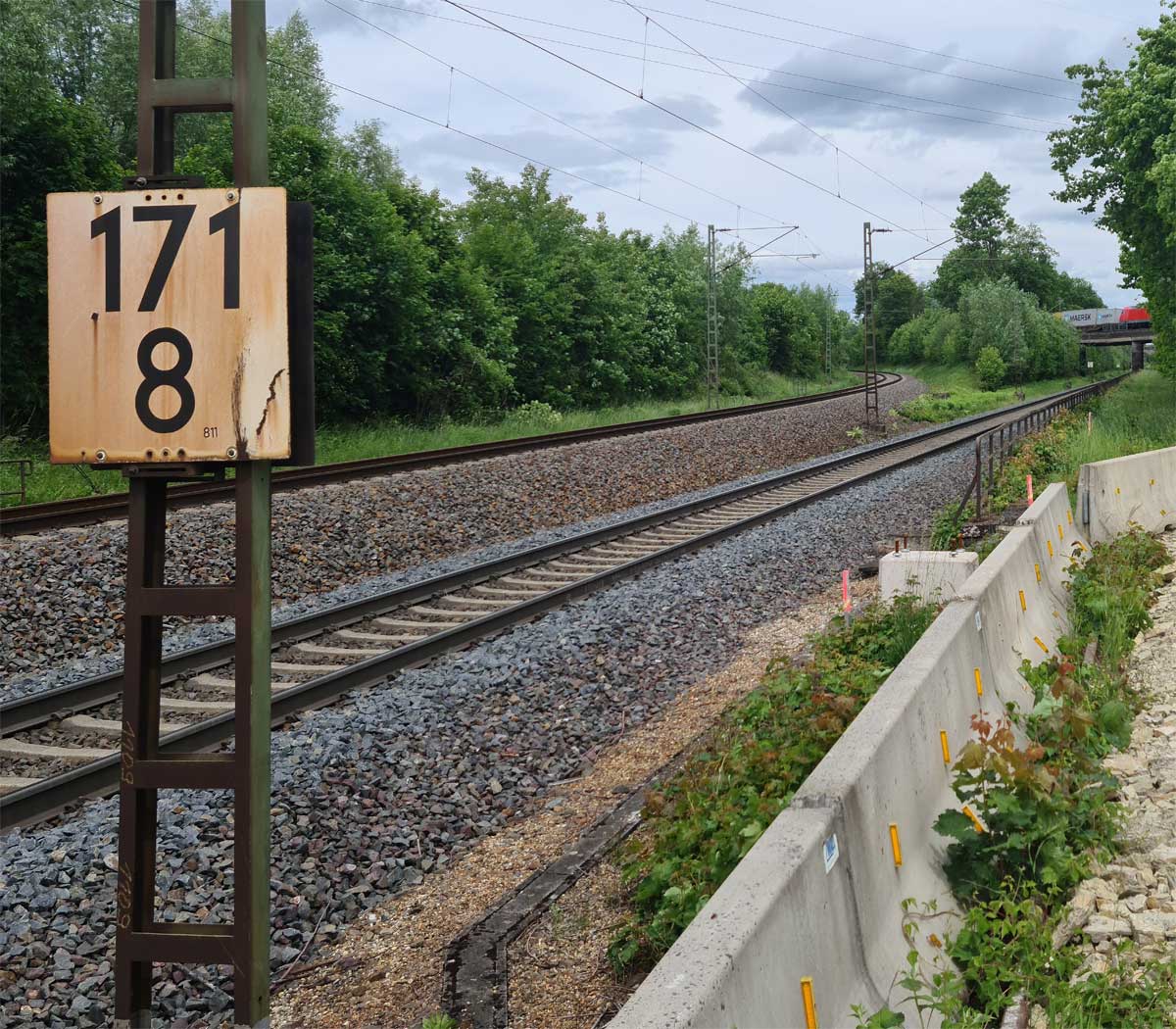 km 171,2 (Gegenrichtungsgleis) und km 171,4 (Gegenrichtungsgleis) in Eichenberg - Blick Richtung Hann Münden