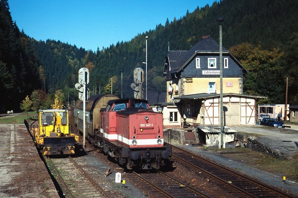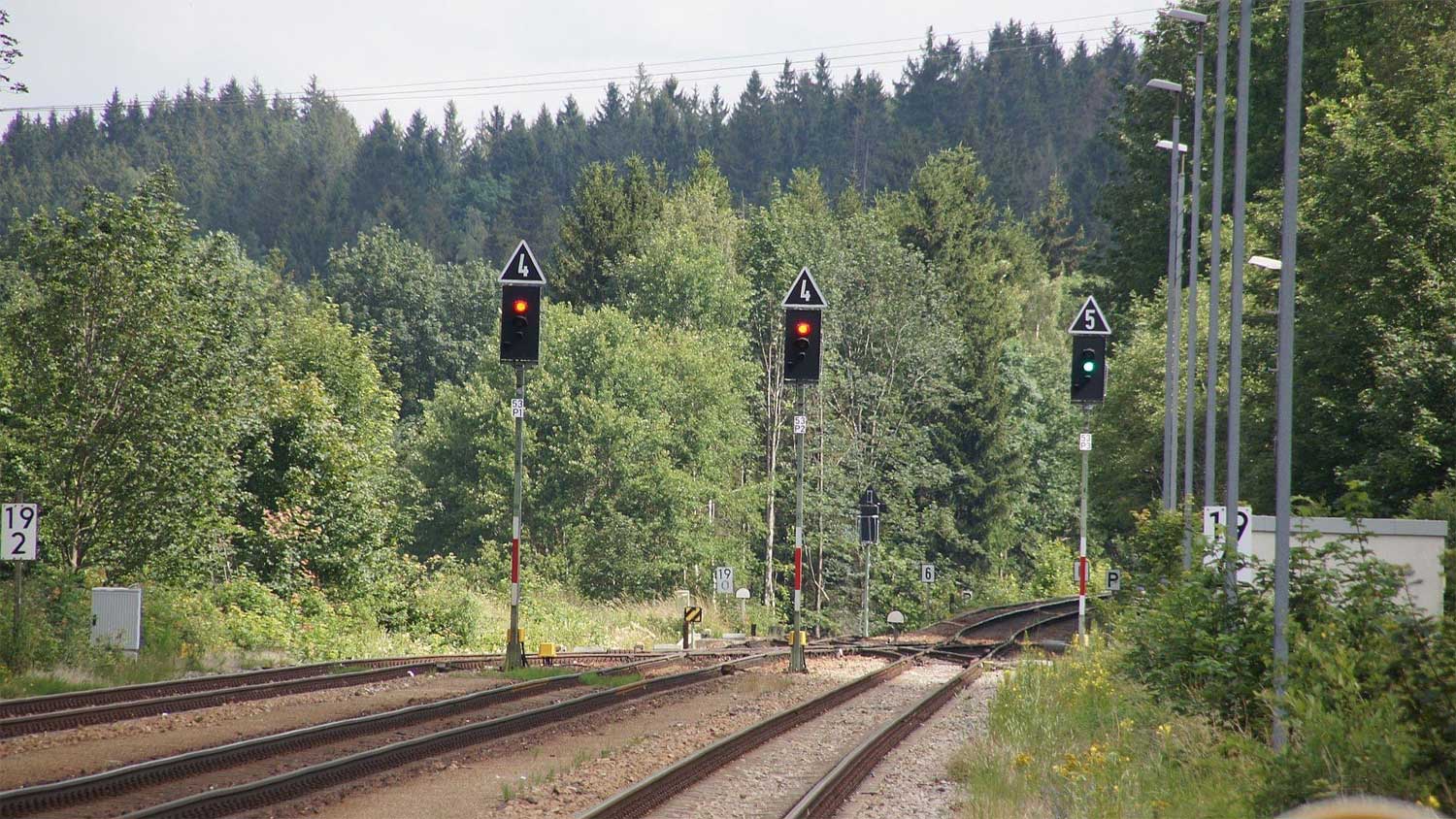 Die beiden linken Gleise gehören zur Strecke Hockeroda - Unterlemnitz, das rechte zur Strecke Triptis - Marxgrün