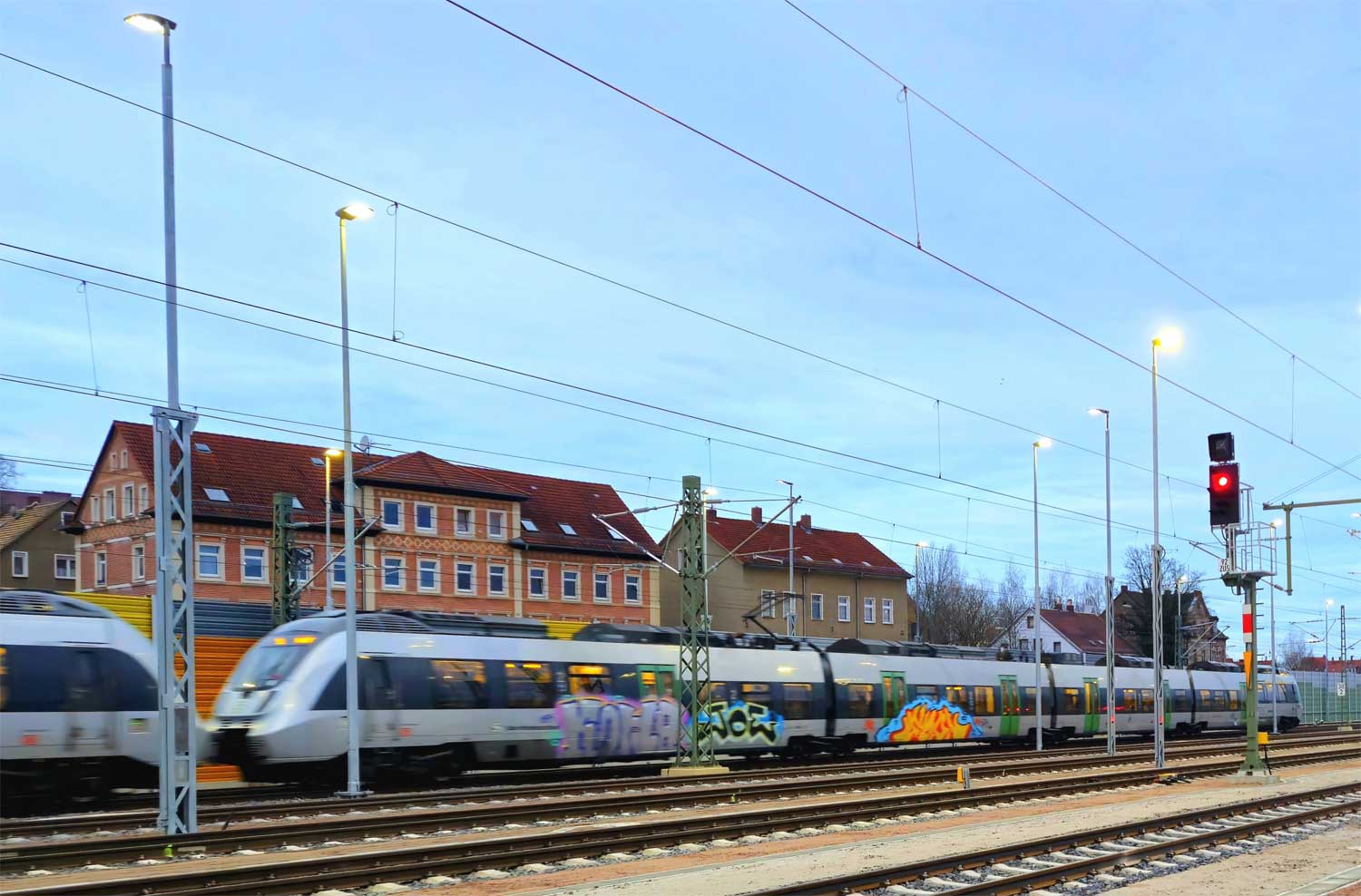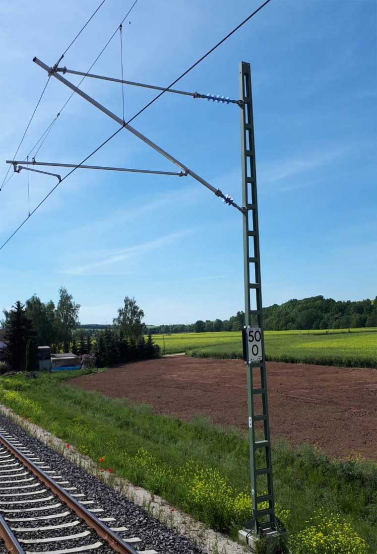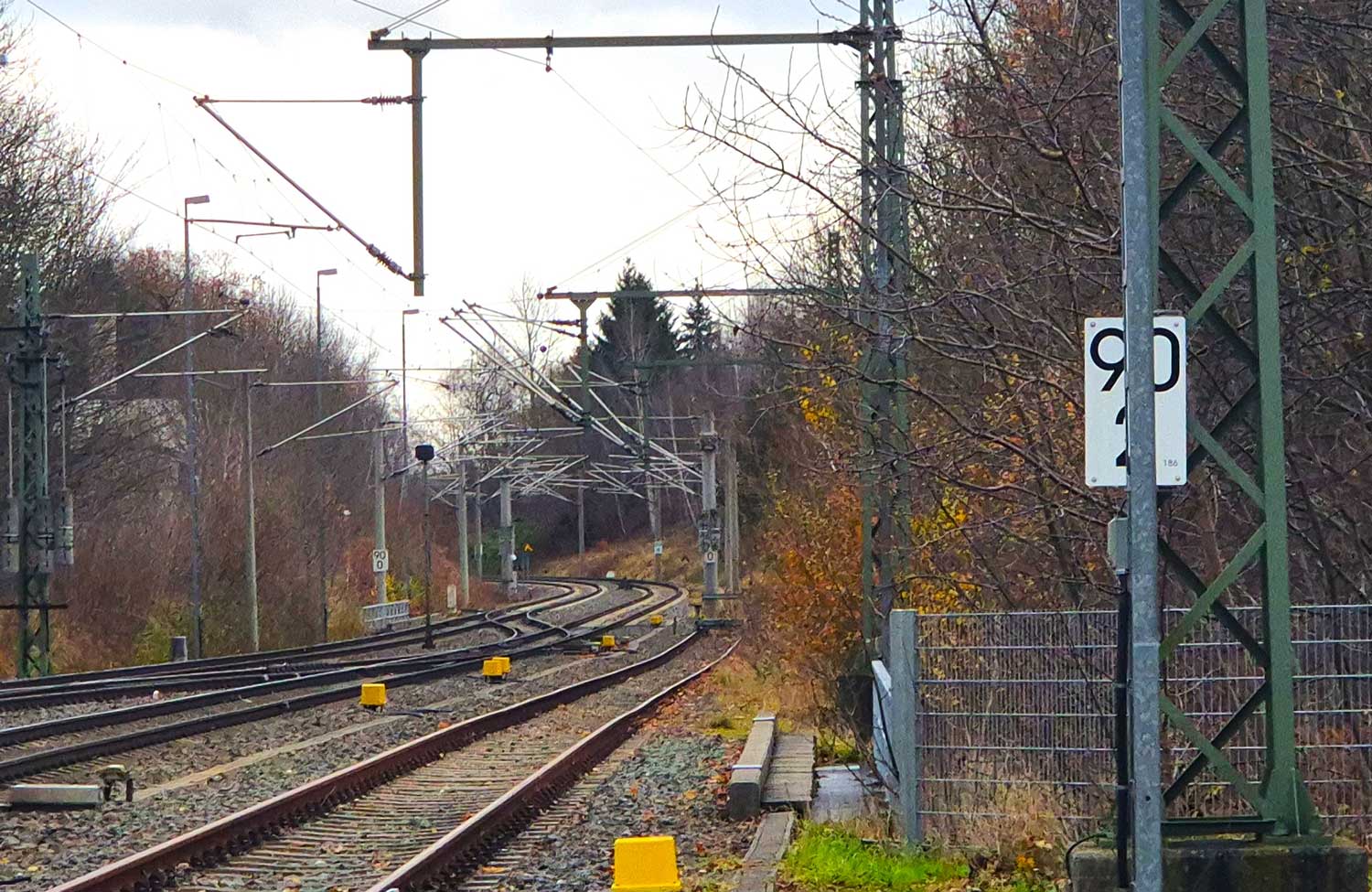 km 163,8 (vor dem Oberleitungsmast) in Hof Hbf