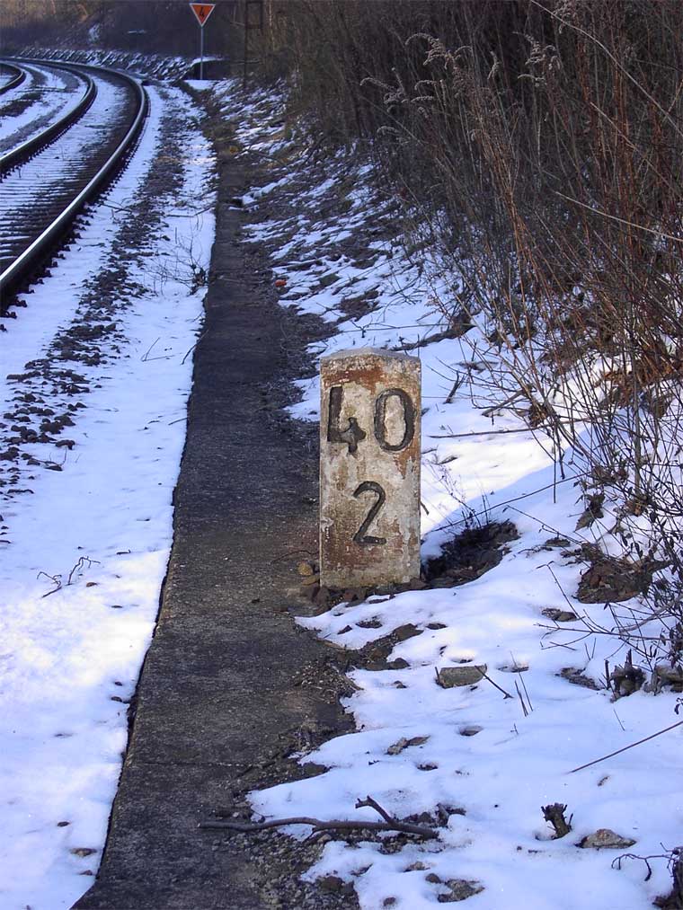 km 1,0 gehört zur Strecke Hof Hbf 0,0 - Naila 18,75 - Marxgrün 22,93 - Bad Steben 26,99