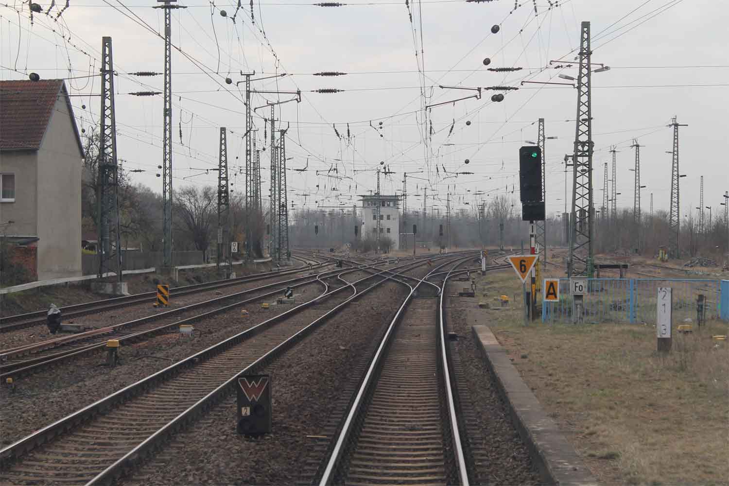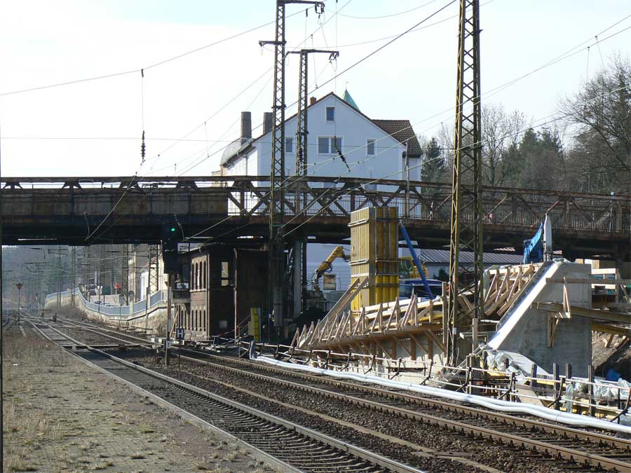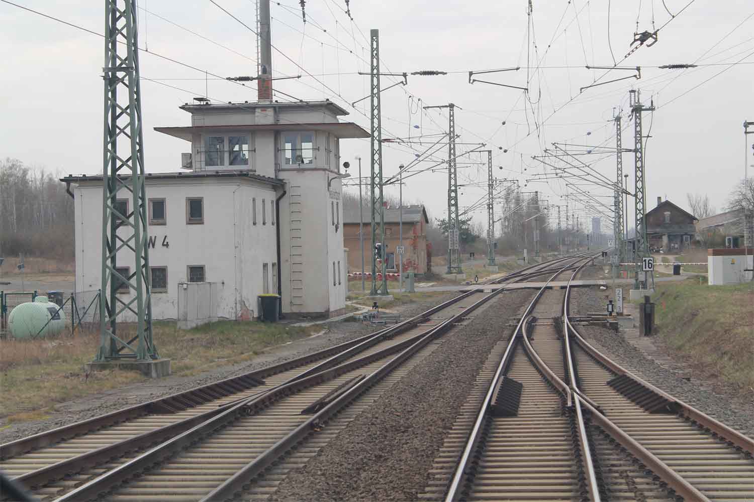 Links ein Behelfsstellwerk
