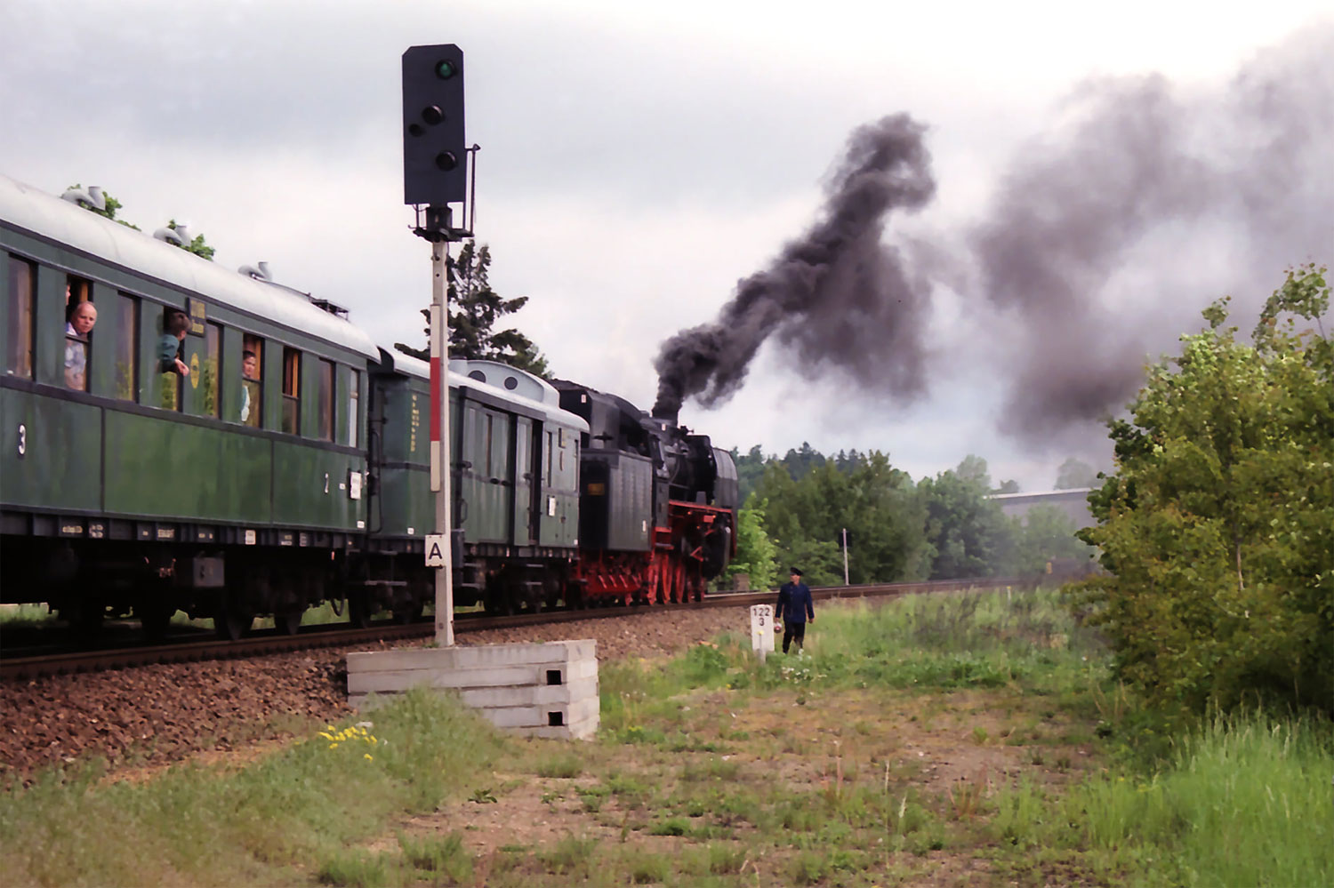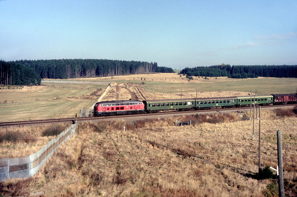 Grenzzaun und Grenze (Grenzpfahl vor der Lok)