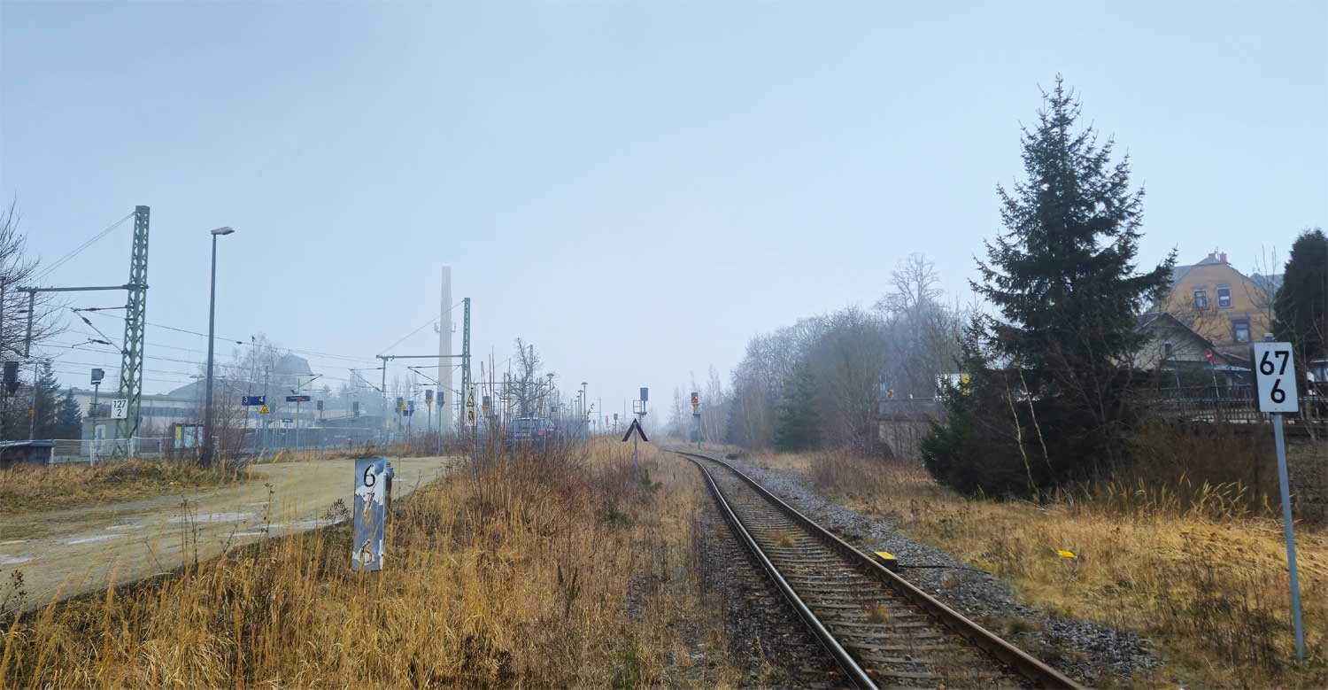 km 0,6 gehört zur Strecke Hof Hbf 0,0 - Naila 18,75 - Marxgrün 22,93 - Bad Steben 26,99