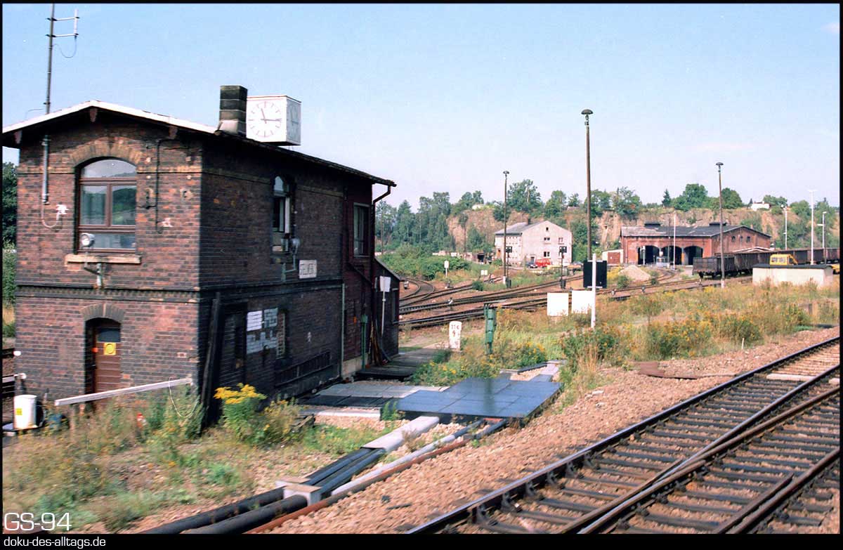 | Gößnitz | 53,624 | km 12,37 der Strecke Glauchau-Schönbörnchen - Gößnitz (SG) km -0,374 der Strecke Gößnitz -0,374 - Gera Hbf 34,68 (GGa) [nach 1945 verkürzt bis Gera Süd] bis 1968 km -0,374 der Strecke Gößnitz -0,374 - Gera Süd 33,48 (ab 1968 wegen Umverlegung im Raum Ronneburg) |