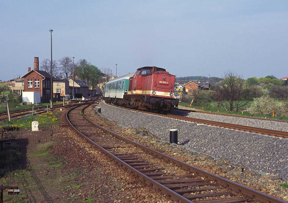 | Abzw. Werdau Bogendreieck (Neumarker Spitze) | 75,90 | km 136,23 der Strecke Dresden Hbf -0,048 - Chemnitz Hbf 79,73 - Zwickau Hbf 128,35 - Abzw. Werdau Bogendreieck (Neumarker Spitze) 136,23 |