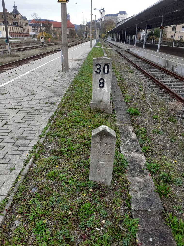 Der Stein 30,8 gilt für die Strecke Gera Süd-Weischlitz.