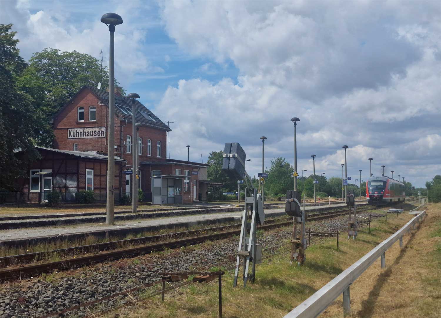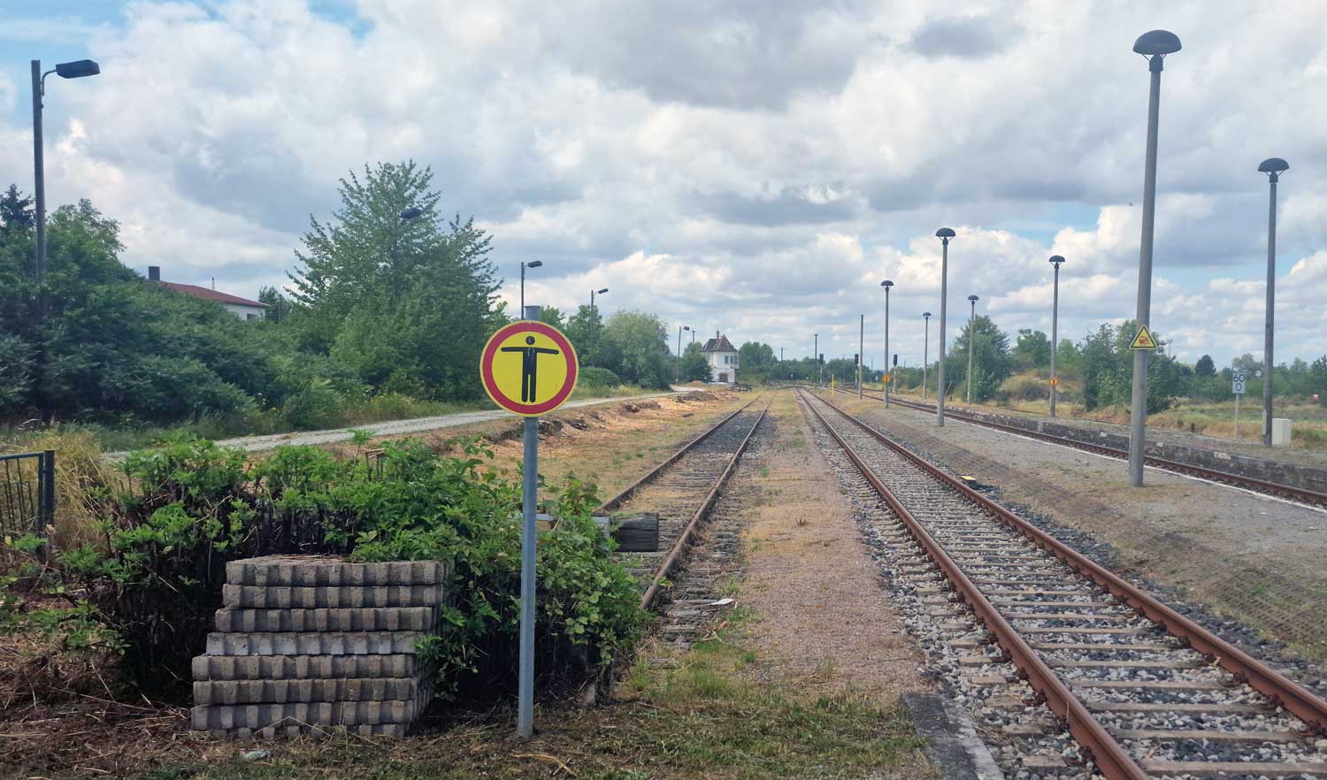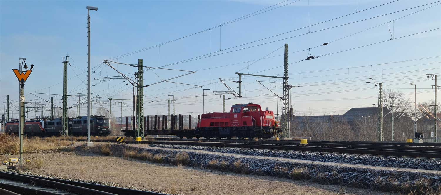 Links ein Bahnhofsgleis